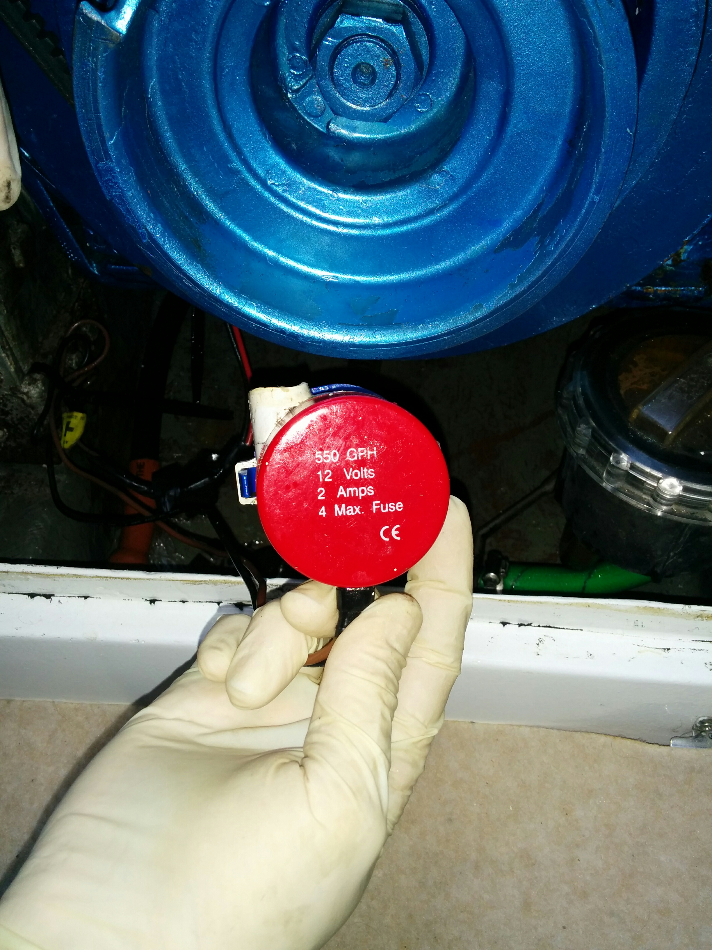 - bilge pump outlet is broken, to replace pump