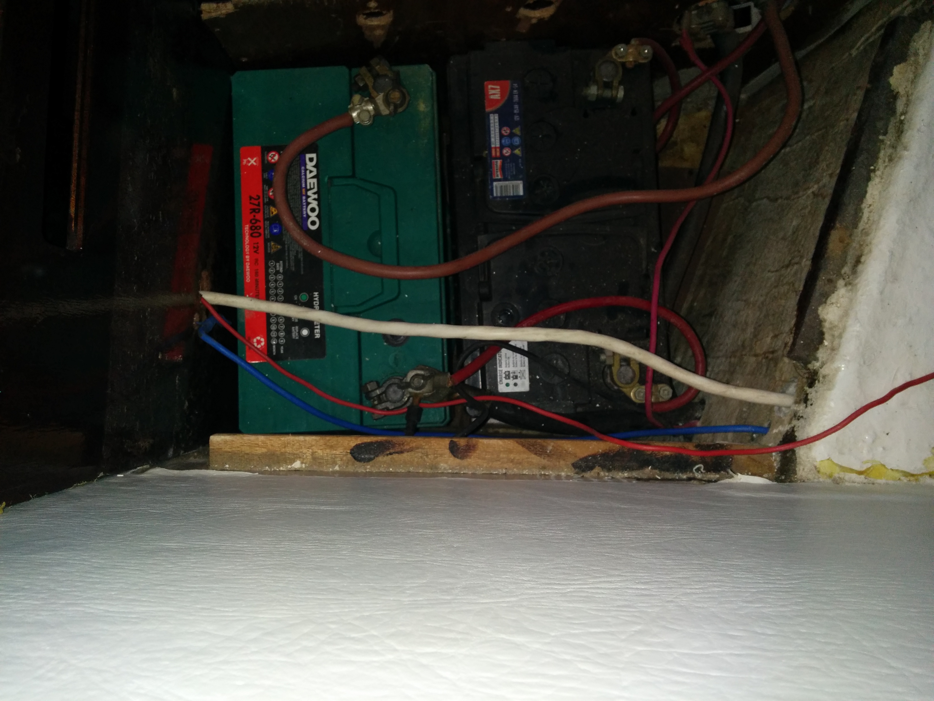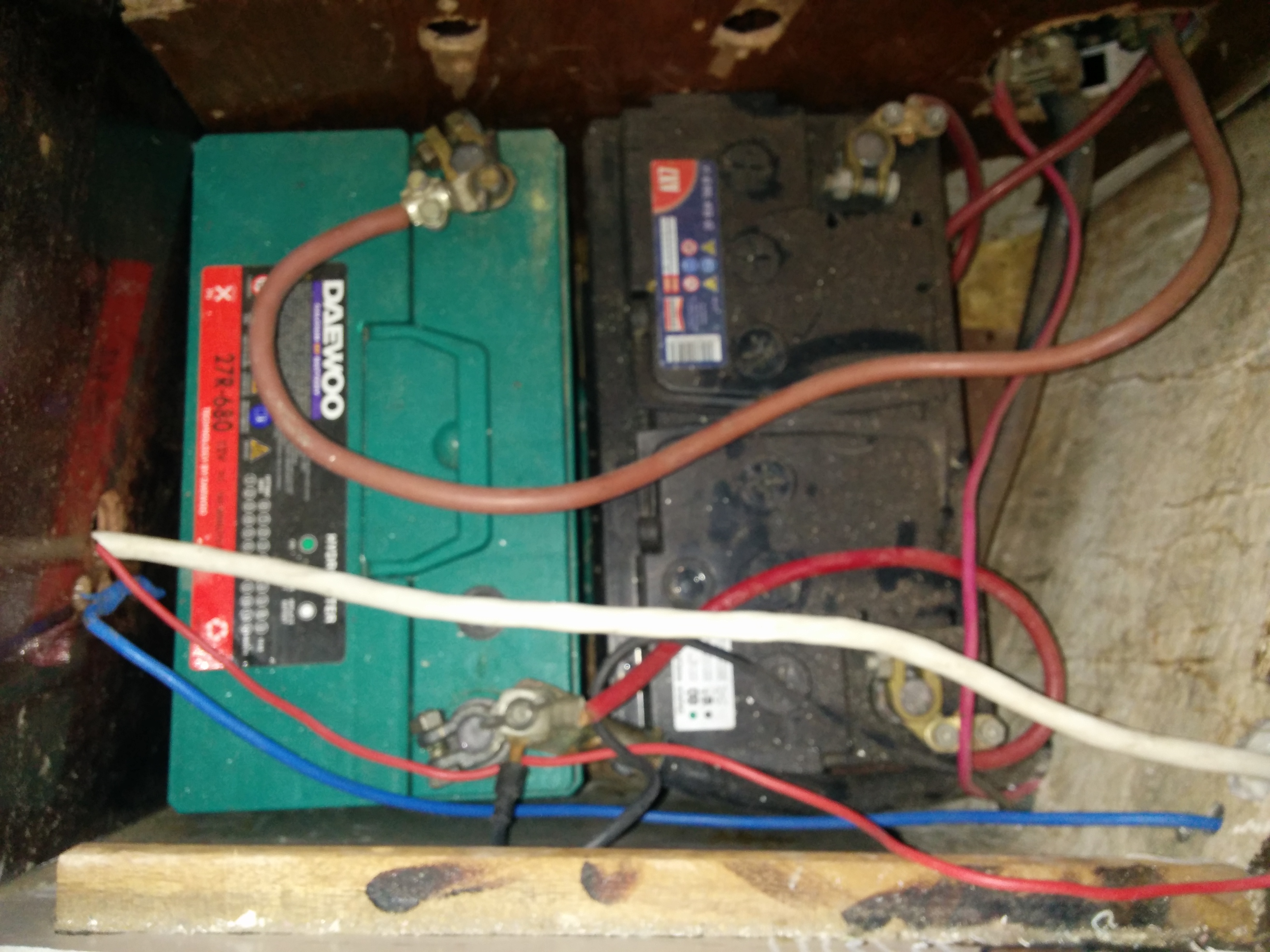 - rewired house/starter battery to combination switch near electrical panel (1 is start battery, 2 is house, selects which is source for DC panel)